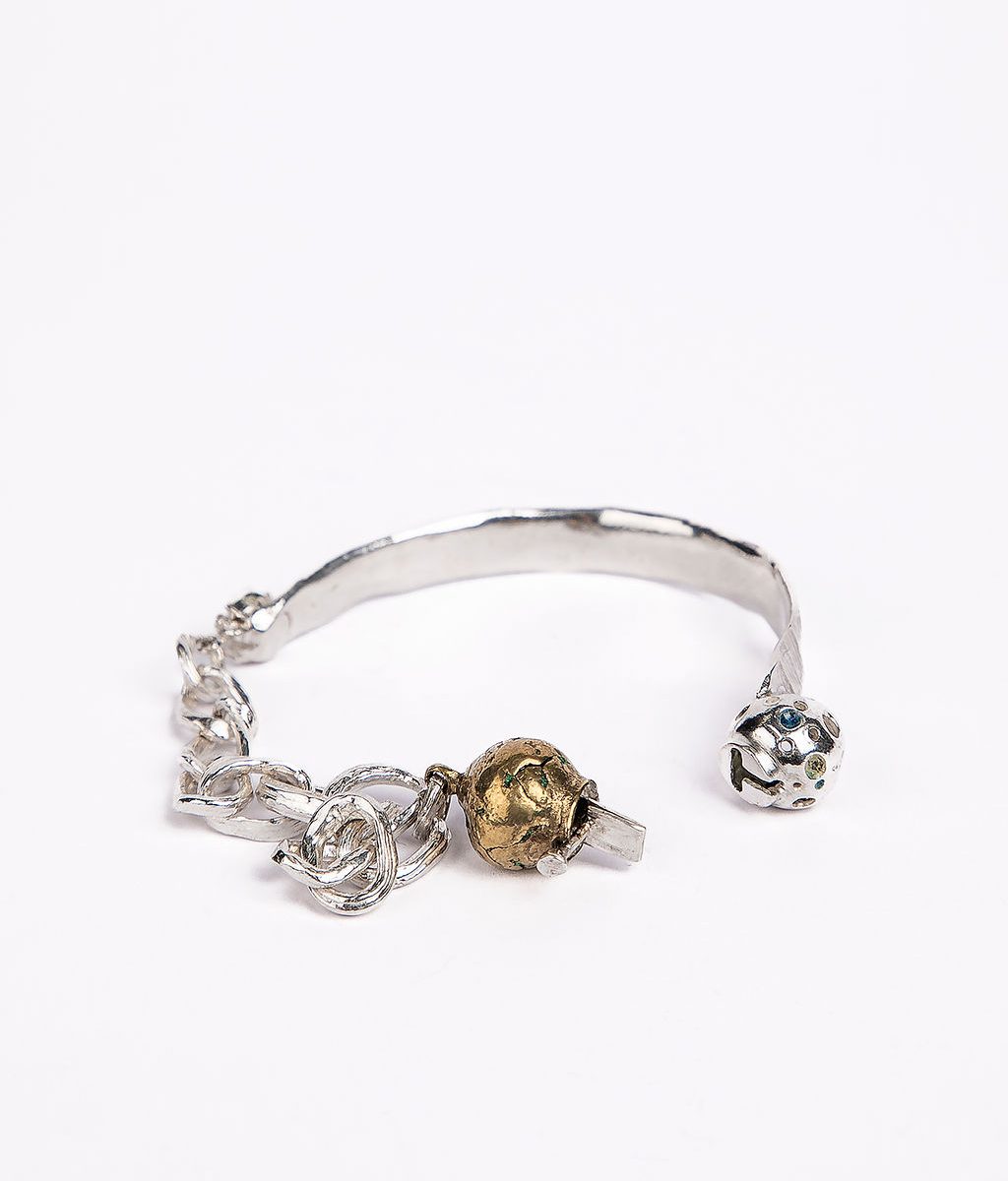 שני קצוות, מדרכים שונות , נפגשים ונושאים יחד אנרגיה חדשה ועשירה. זהו צמיד שנועד להזכיר לנו את העוצמה שנוצרת במפגש בין ניגודים: בין רך לנוקשה, בין חם לקר, בין אני לאחר.
